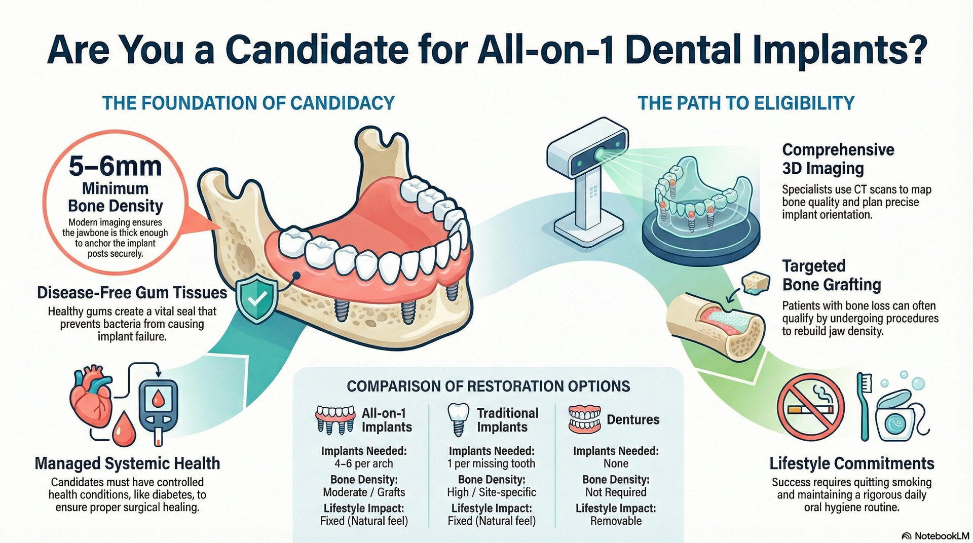 Wondering if All-on-1 implants are right for you? Discover the key factors that determine candidacy and why understanding this can transform your smile and confidence. With the right information, you can take the first steps toward a healthier, more vibrant life. Ready to find out if this revolutionary dental solution fits your needs? Let’s dive in and help you decide if you’re a strong candidate for All-on-1 dental implants.